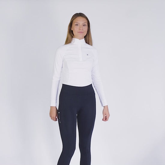 Die Classic Damen-Reitleggings mit Vollbesatz bietet Mobilität und Komfort. Das Material ist feuchtigkeitsableitend, atmungsaktiv und schnell trocknend, was einen guten Tragekomfort bietet. Die Reitleggings hat eine funktionale Handytasche an der Seite, die für mehr Praktikabilität sorgt